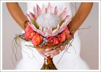 Esta exótica flor, originaria del sur de áfrica y australia, es prácticamente desconocida en España; una verdadera pena porque la singular belleza de la protea, su diversidad y distintos tamaños la convierte en una flor ideal para usar en ramos de novias y decoración de bodas.