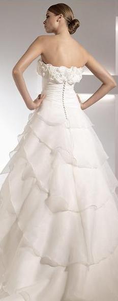 Escote en la espalda del vestido de novia compuesta de botones hasta las caderas.